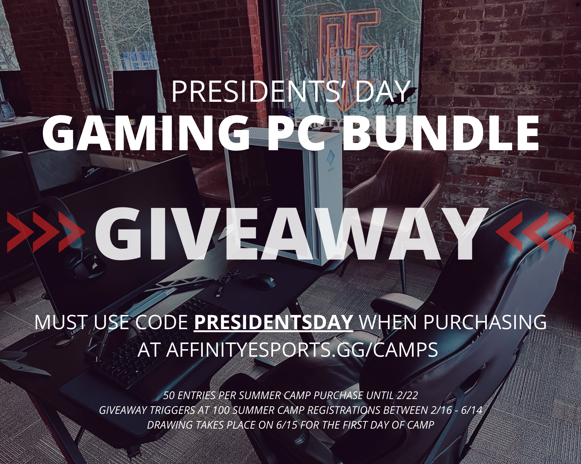 During Presidents’ Day Weekend we will start collecting entries for our Gaming PC Bundle Giveaway. You must purchase Summer Camp slots using code PRESIDENTSDAY to secure your entry.